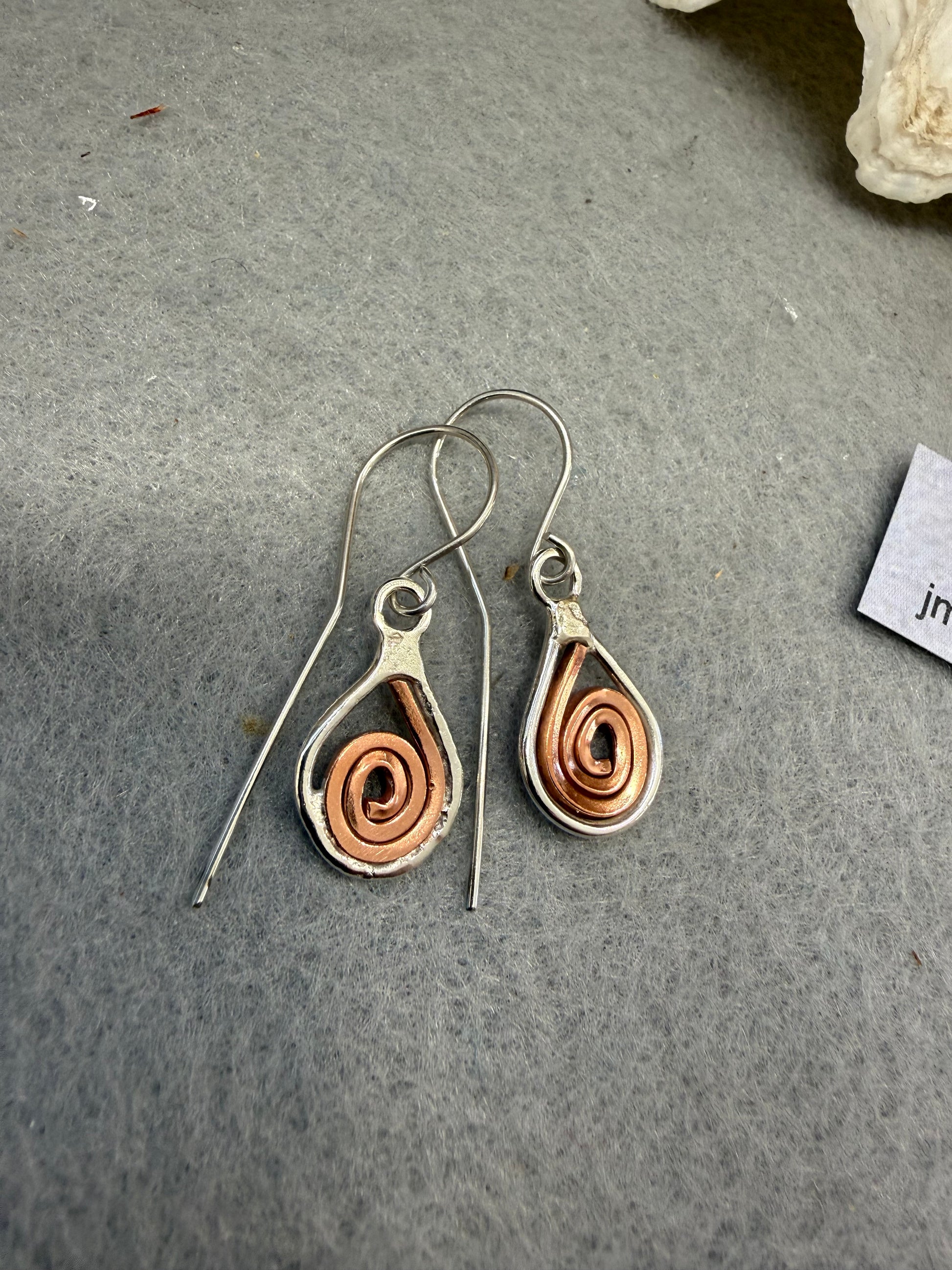 Handmade Sterling Silver and Copper Swirl Earrings