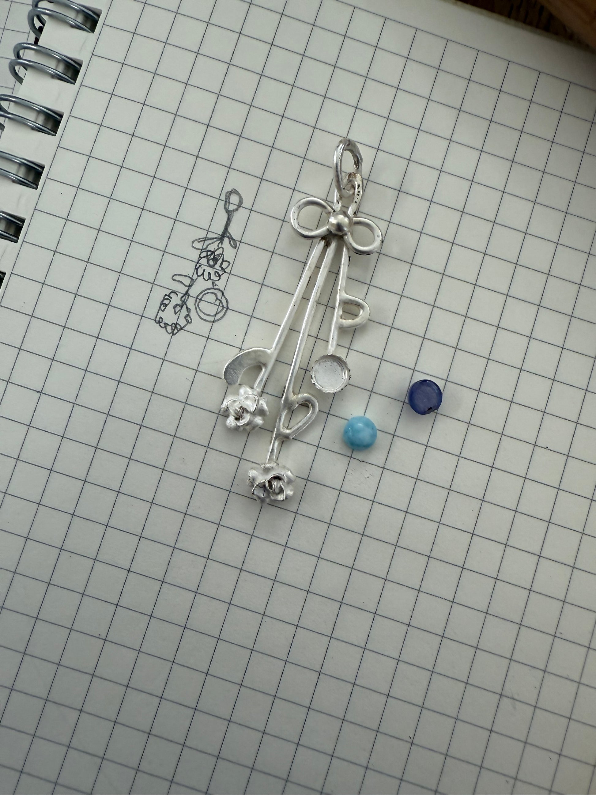 The last two photos show the pendant backside as well as my planning sketch idea.