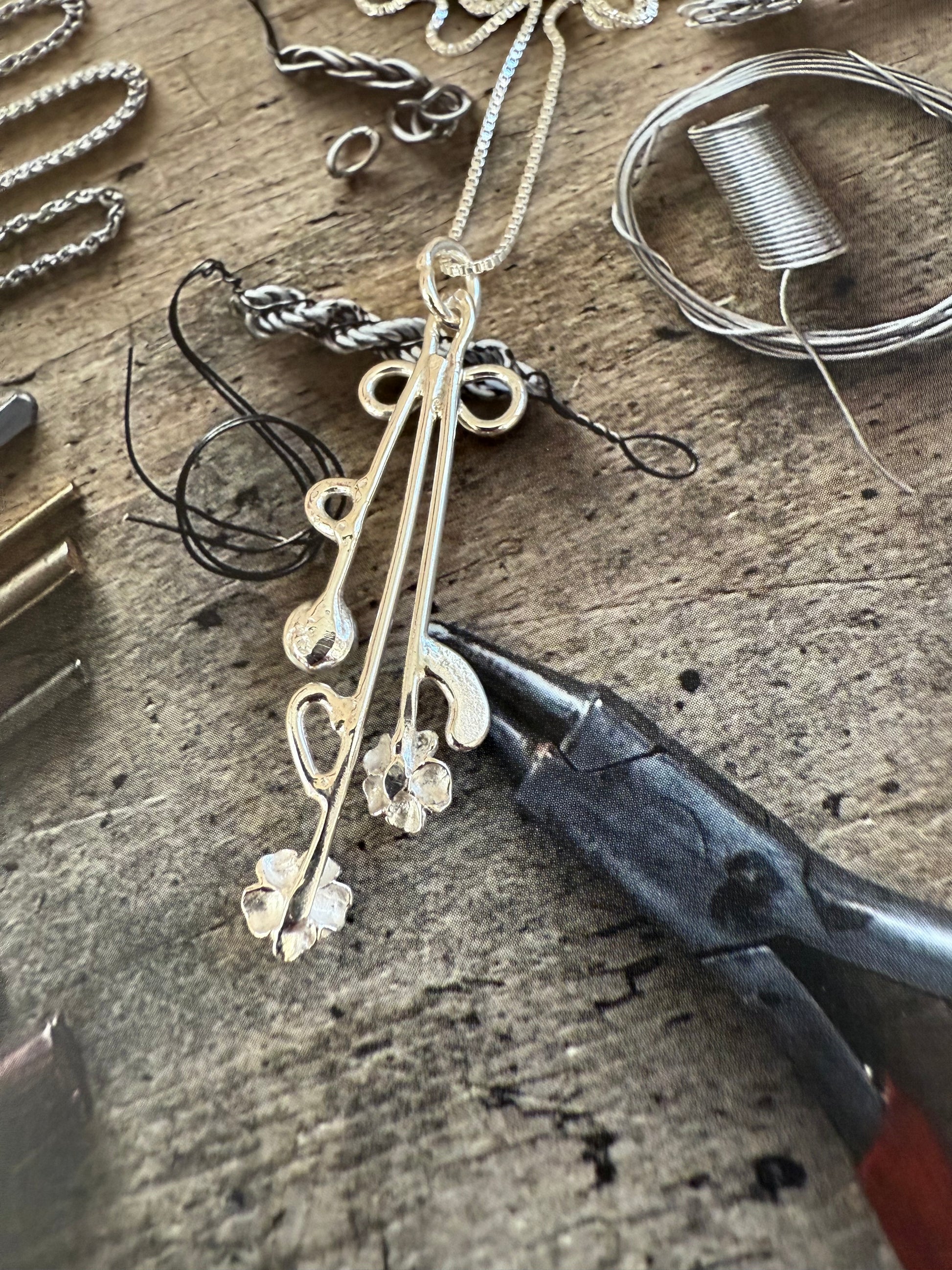 Handmade Sterling Silver “Bouquet” Pendant Necklace with Larimar