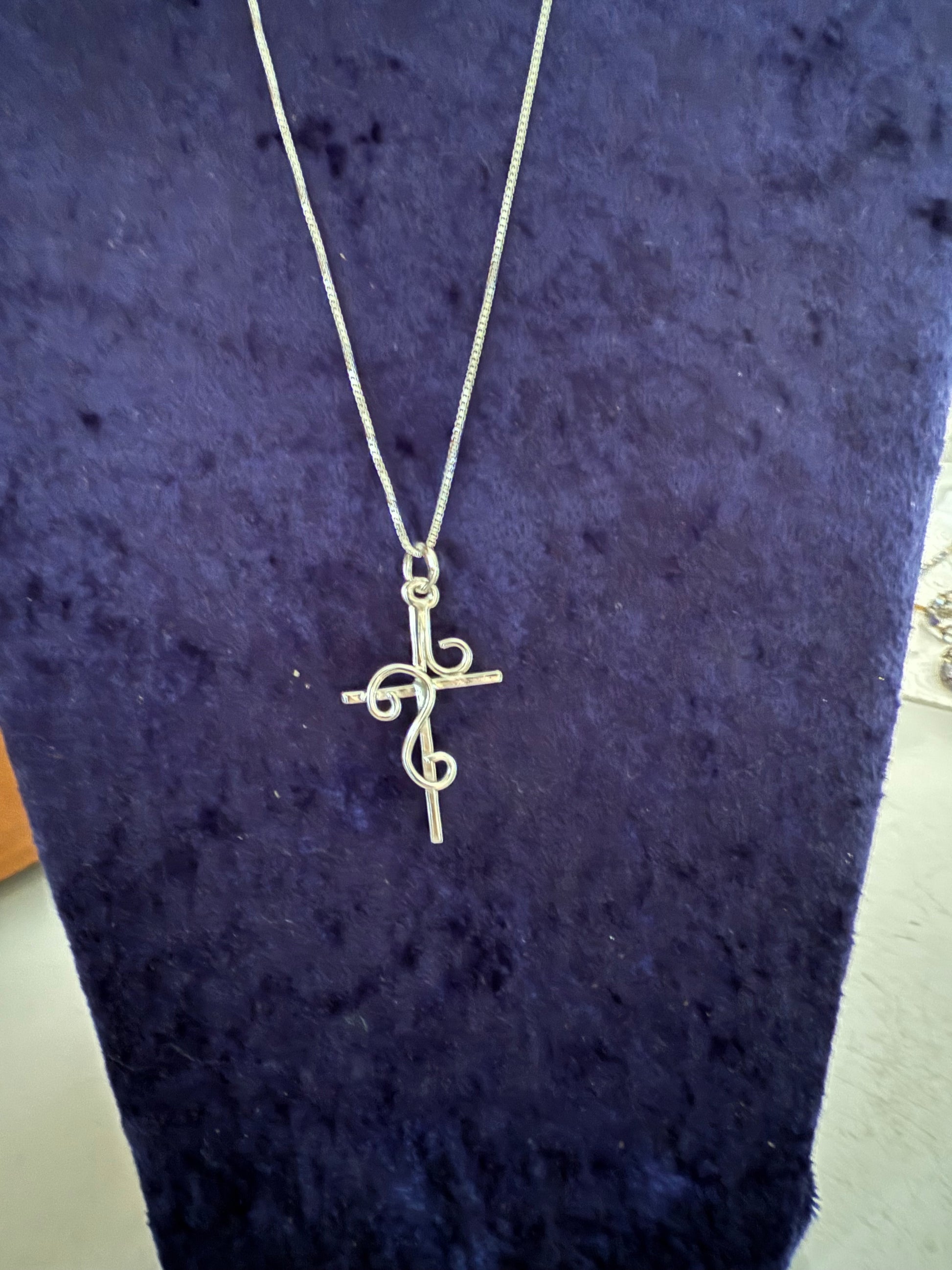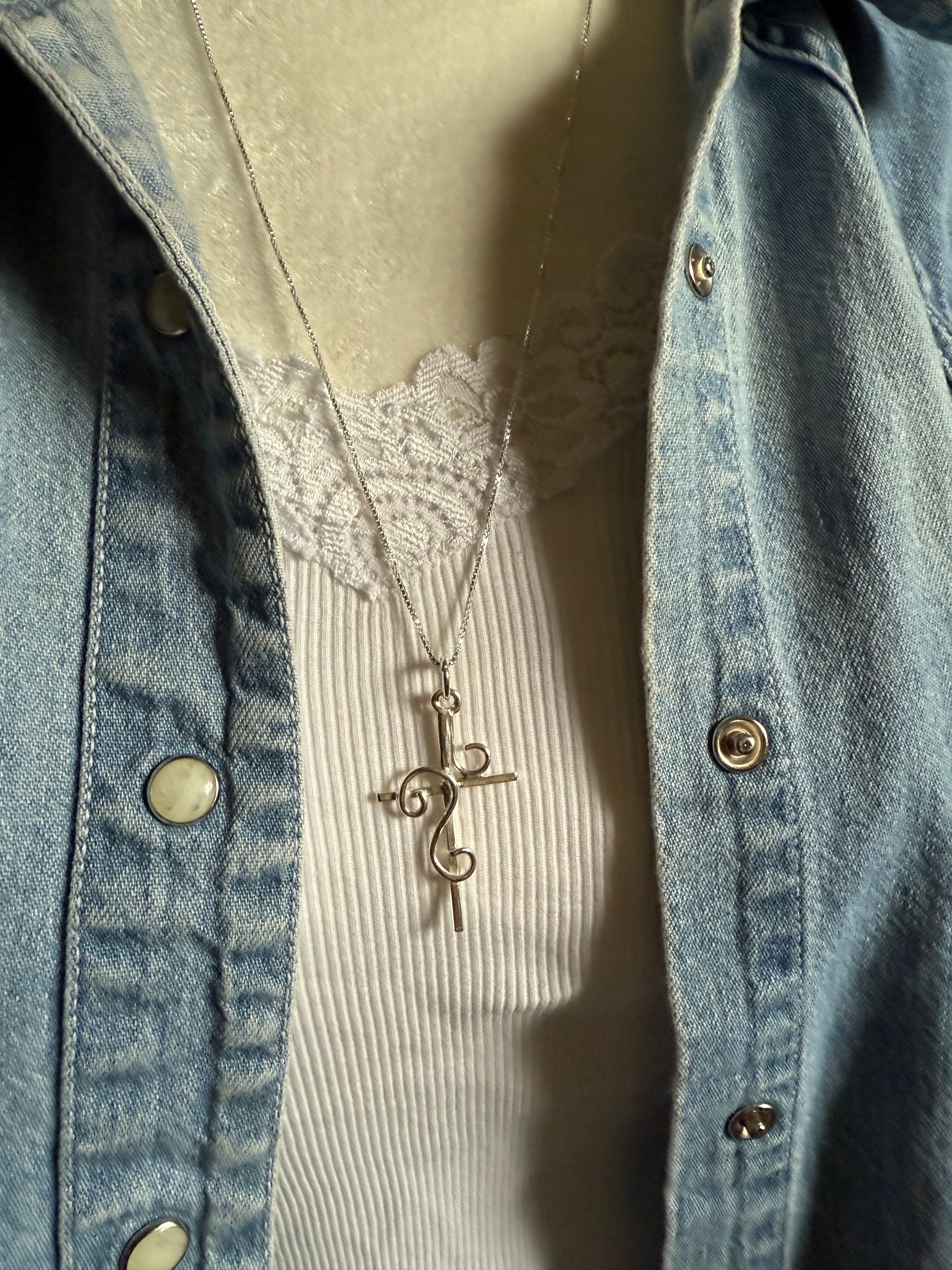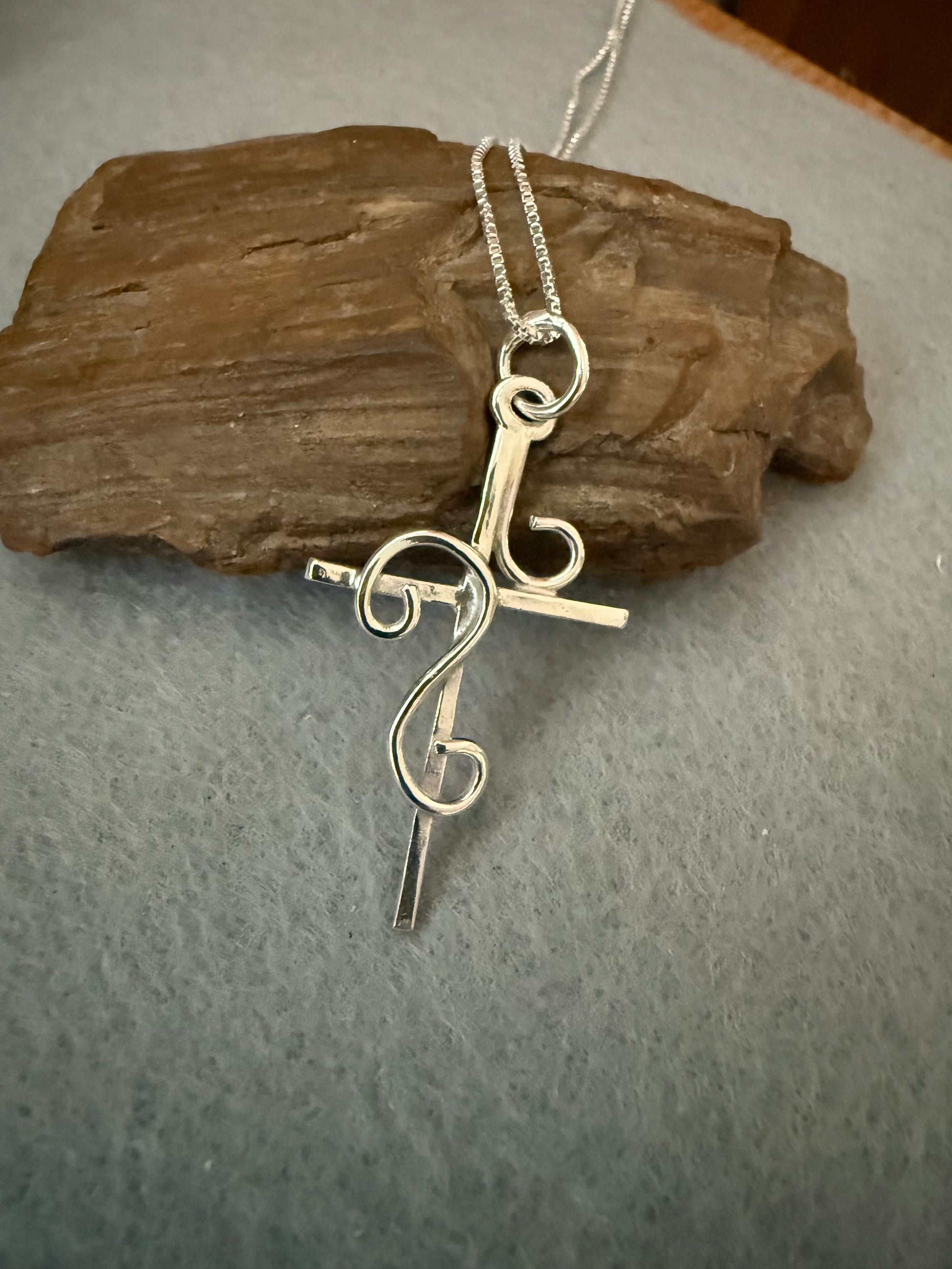 Handmade Sterling Silver Double Swirl Cross Pendant Necklace