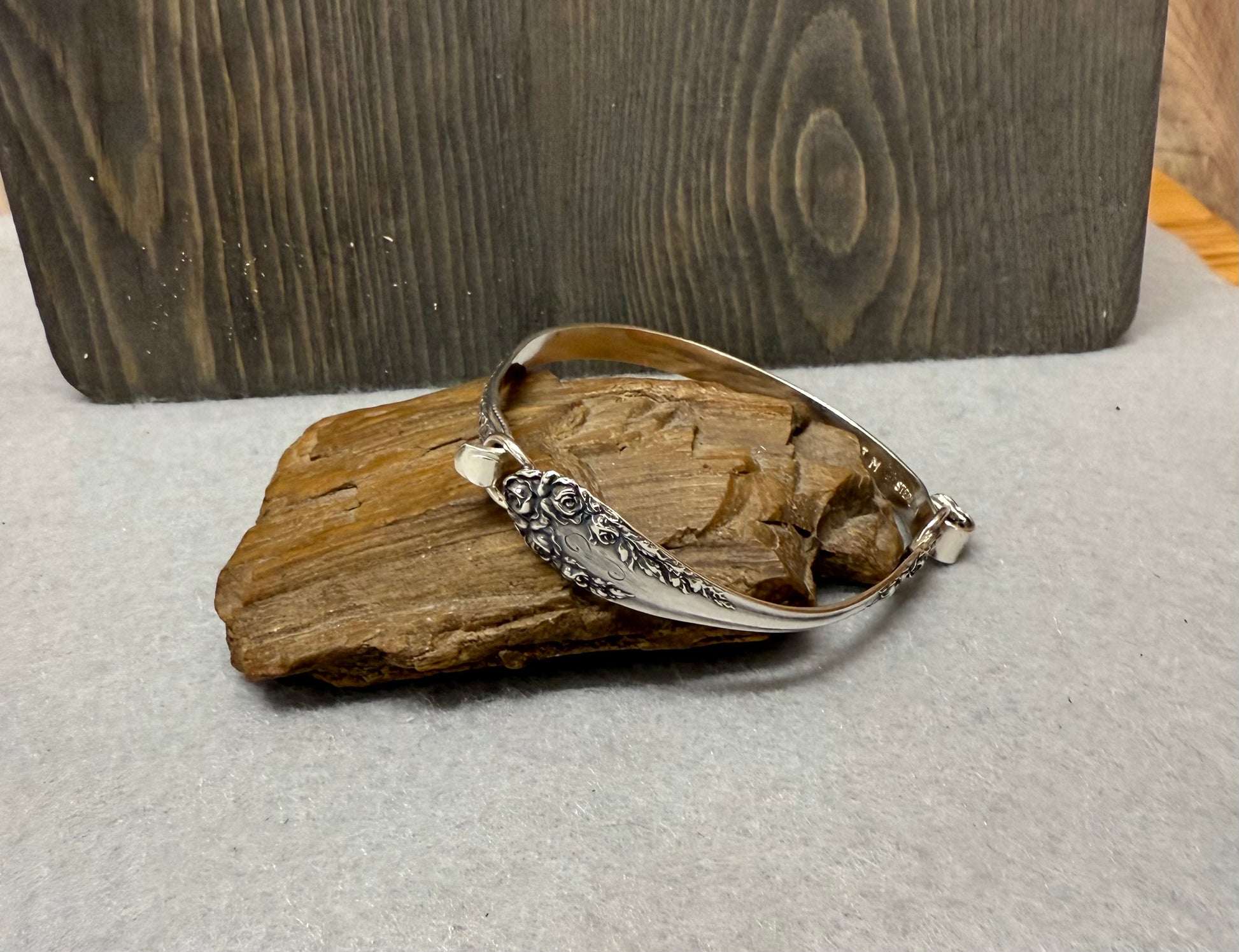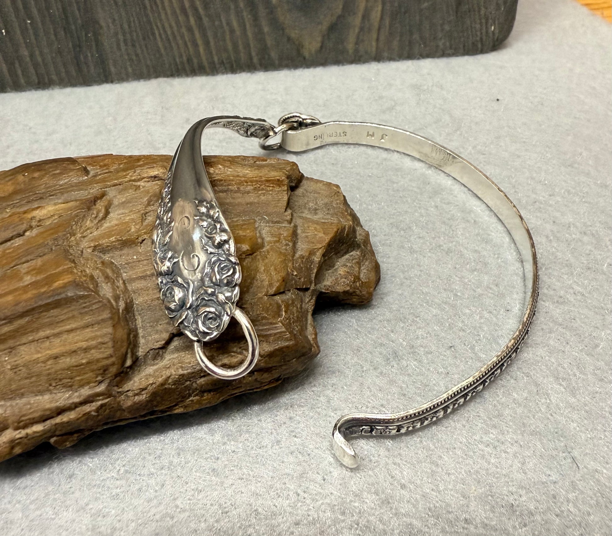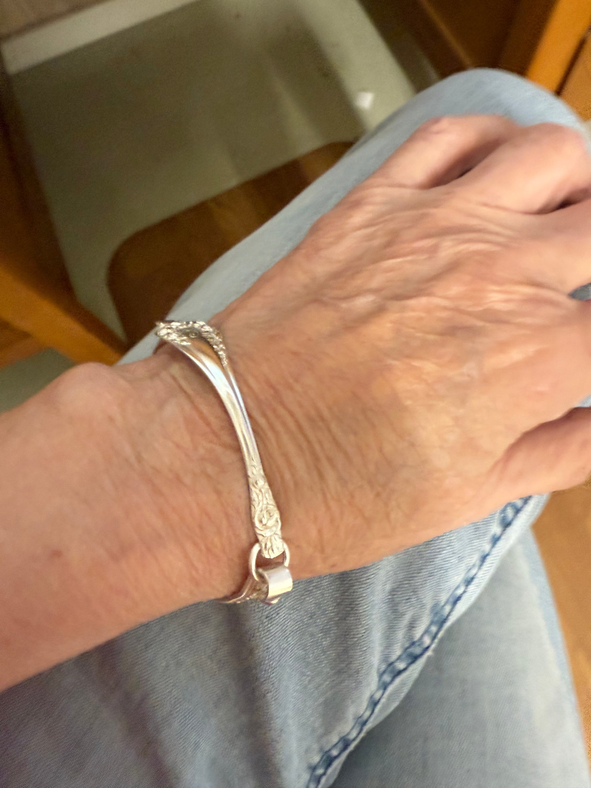 I’ve used a lovely patterned sterling piece and combined it with a floral demitasse spoon handle to make this super comfy, and easy to get on bangle.